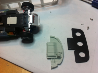 Med diverse spikking på noen plastbiter fra kabelkanaler ble det nytt  karosserifeste foran.