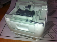 Med diverse spikking på noen plastbiter fra kabelkanaler ble det nytt  karosserifeste foran.
