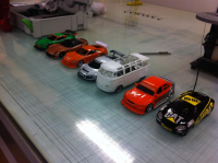 Da bussen er klar til lakking, tenkte jeg at det kunne være greit å ta en titt på en 1303 jeg lagde for 10 år siden. Den har fått litt juling, så det er litt sprekker og mye superlim etter mange runder på Arendal Raceway. Hullet i taket er etter etter en transponder. Tenkte å lappe dette så jeg kan lakke den samtidig. Blir ikke strøken, men det er ikke meningen heller.