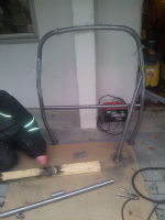Har begynt å lage et halvbur, ikke helt ferdig, mangler skråstiver bak og 2 skråstivere fremover mot A-stolpen.
