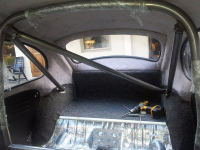 da er buret montert i bilen ferdig lakket  Gliser