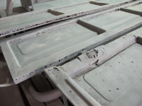 Har bestemt meg for å skifte både fronten og veggplata i karmen. Veggplata er ikkje så rusten, men i håp om at bilen blir rimelig bra vil eg også fjerne alle bulkene som er på denne plata - difor blir den ny. Dyr var den, men i fare for at eg kjem til å angre meg i ettertid så skifter eg den NO.