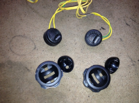 Hei,her er et par bilder.De er ca 3cm i diameter og det følger med kopper til 2 måter å feste de på.Det er også et enkelt 6db delefilter på ledningene.