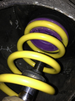 Kjøpte en 1303 hvor det er montert coilovers foran. Hører "klang / spjoing"-lyd fra fjærene når jeg svinger. Jekket opp bilen i front og svingte hjulene manuelt, og da jeg ser på fjæra så er det som den henger litt igjen i bevegelsen, for så å slippe, og da kommer lyden mens fjæra dirrer. Det er snakk om millimeter. Er dette noe som går seg til av seg selv, de er helt nye, eller er noe feil? Det er ingen forskjell om fjærene er belastet eller ikke, samme symptomer med hjulene på bakken eller fritt i lufta.