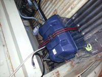 Og kan meddele at inni den blå kassa sitter batteriet festet med de skruer, bolter, skiver og metallstenger som er påkrevd.  Gliser