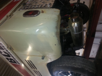 Og når bakdekk kom på plass, bukker ble fjernet og bilen satt ned på gulvet ble det en herlig racingstuk på den! Dekkene gikk akkurat innenfor. Perfect!   Kysser