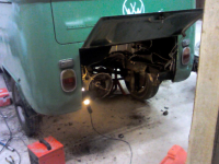 Vi fikk byttet noen bremseslanger i går, og har kommet et skritt nærmere å få fram bremsevæska dit den skal. Pumpene i tromlene står for tur. Takk til Squareback og Limmochris for god hjelp.