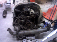 Jeg nappa ut motoren i går. BP73 klargjør en annen kjøreklar motor for meg.
