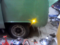 Vi fikk ikke gjort så mye i dag, for vi oppdaget at vi manglet deler. Blir kjøpt inn i morgen. Men vi fikk i alle fall pønta litt mer til jul. Monterte nye markeringslys, LED. De fungerer faktisk også, og smatt rett inn i hullene fra de gamle. Skaffet på eBay selvfølgelig.