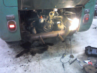 Monterte adapter for bakre motorfeste, og festet i dag. Bolt on, my ass. Ble mye tilpassing, demontering av motordeler, og egenproduksjon av deler for å få dette til å funke. Nå er i alle fall den "nye" motoren klar til montering. Forhåpentligvis ikke altfor lenge til oppstart, og de første km for egen maskin på over 35 år.