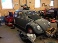 Har et prosjekt av en 63 modell boble for salg, såvidt påbegynt, men fikk nylig tak i tut og kjør bil, så nå tar dette opp plass bare, så lufter den for salg. Karosseriet har rust på de vanlige stedene. Har delt karosseriet fra bunnen, og skiftet bakspissene med bakspisser kjøpt fra mags. Det som ellers må gjøres er det vanlige i innerskjermene, noen skjermfestemuttere må fikses, kanalene må skiftes i sin helhet, og litt småfiks av torpedoveggen foran, der den kommer i kontakt med kanalene. Skjermene har sett bedre dager. Ellers så er selve karosseriet i fin bulkfri stand  Bunnen trenger å få lappet noen små hull her og der. Prisen kommer an på om sveisedeler skal følge med eller ikke. Selger ikke kun sveisedelene, da det er liten vits i at jeg sitter igjen med prosjektet uten sveisedeler  Det jeg har av sveisedeler er utkapp av karosserifester fra donorbil bak, kanaler og rep-paneler til bakom dørene fra Gerson (= dyrt) Pris for kun prosjektet: 3000,- Pris for prosjektet med sveisedelene: 9000,- (jepp, Gersondeler er dyrt  ) Bilder selger sies det  Før demontering: