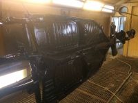 Fredag ble flyndra lakka og den ble hentet heim i dag 😃. Alle smådeler er maskert over foringer etc så en tur til lakkboks med girkasse, travers, bærearmer, styrestag, stabstag, og småting så kan montering starte😁
