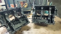 Hadde en trivelig økt i garasjen i dag, og fikk satt sammen motoren til longblock. Som vanlig startet dagen med rengjøring og inspeksjon av deler. I tillegg til balansering av veivpartiet har også stemplene blitt vektjustert og skal alle ligge innenfor grammet.
