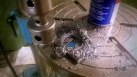 DSC_0536 (Small).jpg (61.28 KB. 800x450 - vist 565 ganger.) Deretter gikk turen til fabrikkering av flensen mot gassern, der første punkt var å lage et dertil egnet hull midt i stålplata.