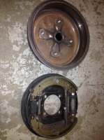 Komplette bremseskjold med hjulsylindre og band+tromler.Nye deler for 2100+tromler