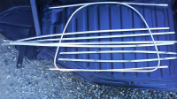 Den ene lengden har skader helt i ytterkant, noe som ikke er et problem omm dette skal brukes til puter eller sete/sofatrekk til bobla/transporteren.