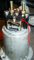 Kontaktsettet i bensinpumpen skal ha 1mm klaring. Se bildet under.