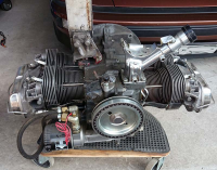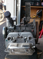 Hva motoren egentlig inneholder av deler er uklart. Det er lett å se på utsiden at motoren har Gene Berg equalizer pully, filterholder med inn/ut for ekstern oljekjøler, 040 topper som er betydelig portet og polert med 42x37 mm ventiler, uten noen sprekker/skader, og autocraft vipper. Men hva som er inne i selve blokka, det er usikkert og dermed grunnen til at jeg skriver "motorprosjekt". Dvs at denne motoren bør demonteres, alt sjekkes og montres sammen igjen.