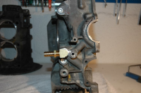 006 (752 x 500).jpg (63.08 KB. 752x500 - vist 860 ganger.) Prøvemontert Galleripluggen i front som reduserer oljemengden til det bakre veivlagret, fikk jeg tatt ut uten at den ble ødelagt, så den blir banket på plass igjen  Ser under "how-to full flow" på sidene her på forumet at oljekanalen blir plugget både i oljepumpa og i blokka? Blir ikke det smør på flesk
