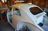 Jeg har ikke gjort annet grunnarbeide enn å ribbe karosseriet og tatt sveisinga, så jeg regner med at det går en stund før jeg kan begynne å hente ferdige deler