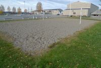 Dro bort til skolen vi prata om og ble litt overrasket over strørrelsen på grusplassen vi tenkte på å bruke  Rekker tunge