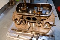 Motoren i LP 3 under demontering. Planer for i vinter er T4 oljekjøler, sylindre fra JPM og litt tukling med forgasserne.