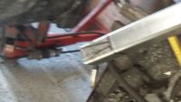 Jeg valgte å bruke stål av samme tykkelse som jeg knakk på to sider for å få sterkere profil på den da jeg måtte kappe ut av krybba for å komme til oljetapping på girkassa.