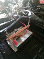 Bilen skal nå på lagring mens jeg gjør klar karossen for lakk og en liten rust sveis. Sånn ellers lirer jog på om den batteri innfestningen her er godkjent?