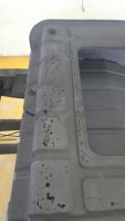 Då er "ramma" sandblåst og grunna med epoxy grunning, men meir rust har kommet fram  Ny bestilling er sendt til Mr Gerson på Klassicfab, men han ligger " way behind with orders" så eg har ikkje fått nokon leveringstid på nye b-stolper, c-stolpe og fremre "wheel well". Er nok berre å smørje seg med tolmodigheit........  litt bilder igjen.