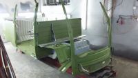 Hvor mye av bilen blir brukt? Imponerende at man får så mye karosserideler til disse enda. Den i giggen der ser jo ut som en svært bra start. Det er jo en veldig tidlig model. Hvor mye likt er skjelettet nyere modeller?