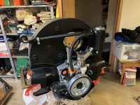 Etter litt regning så har jeg kommet frem til at org siste rev åndesystem var 254mm^2 mens jeg nå har to stk utganger som totalt gir 390mm^2. dette sammen med tykke 92mm sammen med total seal gas portede ringer og der sylindre er cnc honet til optimal overflateruhet (fulgte faktisk med papirer på specs av honen) så er håpet at det skal bli en «tett» motor