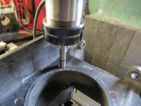 Her brukes et dybdemikrometer for å kartlegge avviket. Dette vil bli kompsensert ifa. shims under anlegget når blokka spennes opp i fresen.