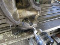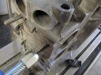 Her brukes et dybdemikrometer for å kartlegge avviket. Dette vil bli kompsensert ifa. shims under anlegget når blokka spennes opp i fresen.