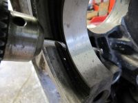 Sylinder-deck tas ned for å rette opp sylinderanlegget til veivas nye posisjon som nå har blitt kompensert for ifa. shimsing av blokka relativt til fresebordet.