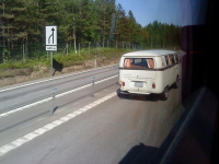 Den som fikk meg til å nesten kjøre av veien var en grønn splitt-boble på Kübelchassi som kom putrende motsatt vei!!!