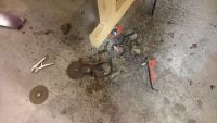 Gjort litt i dag også. Sveist ferdig hjørnet bak. Skal også tinnsparkle overgangen. Fikk også sveist på mutteren til varme røret. Samt lagd siste platen til hjørnet. Den under setet.