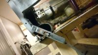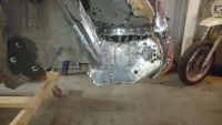 Fått gjort noe i dag også. Fått gjort det samme med støtfangerfestene på høyre side som på  andre siden. Er også sveist nesten ferdig på bilen. Glemte bilder av ferdig produkt. Prøve monterte frontplanten også. Men er veldig trangt. frontplanten virker litt smal i toppen.