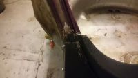 Kappet ut den orginale tute braketten, pusset den ned. Primet den. Helsveise den også da. Skal ikke ha vann mellom platene.