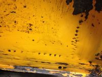 Pause i helgen og levering av topper for maskinering av ventilseter ,, bytter også eksosventiler . Disse var blitt ganske konkav i annleggsflate og vanskelig å få tett ... Tilbake til karrosseri da. Kjedelig arbeid med å fjerne tecktyl i innerskjæremer bak . Uten denne jobben er det vanskelig å få en oversikt over rustangrep i de viktige forsterkningene innenfor bakhjul . Det viste seg å være et lite angrep rett over karrosserifestet på venstre side ,(bilde) Bruker et sløtt skrujern til å ta bort tecktylen , vasker deretter med Turtle avfetting , (nye til Biltema ,svart flaske er fullstendig ubrukelig ) ... Dette må gjøres noe med . Bortsett fra å kutte ut rust å sveise inn nytt anbefaler jeg Ferro-Bet rustfjærner . Finns i alle malings- byggvare i Norge .. Denne kryper godt og gjentatt bruk fjerner rusten der det er vanskelig å komme til .. Ovenpå nysveiste/sandblåste deler deler anbefaler jeg 2 komponent grunning , 1 komp som selges overalt er ikke godt nok .. Høyre side var meget bra og sveiseapp. skal ikke fram her .. Noe rust samler seg alltid rundt skjermfestehullene , en bolt knakk av hos meg og må borres ut . Ellers er det punktblåsing /behandling som gjelder rundt innfest.punktene . Regn med at skjermene har samme rust rundt hullene ... Mvh
