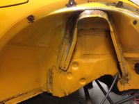 Problem avdekket i bunn forsterkning støtdempertårn , ellers fin innerskjerm fram venstre . hull også i bakkant der torpedovegg møter kanal og bunnplate (se innringning ) ,,, Kun høyre innerskjerm fram igjen og synes denne bilen er ganske bra .. oppsumering og start av reperasjoner snart . (følg gjerne Anders 1303 , samme problemområder i stort  ) mvh