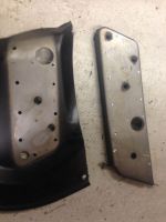 Den nye rustskadedelen fra JP er ok , men utrolig dårlig behandlet . Denne delen består av utv. plate + forsterkning . Kommer å borre dette fra hverandre , behandle og sveise tilbake ..  Glad