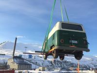 Panelen har jeg hatt lagret i flere år i en møkkakjeller i Bergens-området, og via via klarte jeg å ordne transport med en båt som skulle til Svalbard. Ikke bare å hente på henger, men nå er den i alle fall på plass i isødet.