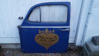 Siste rest av delene må omsider vekk. Det er snakk om venstre og høyre dør foran. Originalt lakkert i L436 "indigo blau", men er senere omlakkert av en eier med sans for en lysere nyanse. Dørene bærer preg av å ha vært lagret en stund, men er ellers i grei stand. De har begge originale dørhåndtak for årsmodellen som var en kuriositet kun for 1960.