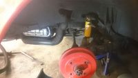 Da er stabstaget bak montert løst på. Må jo av igjen når jeg skal senke men det er fort gjort. Smørte opp foringer med teflonspray. Handlet også inn lyddempe matter til bilen. Ikke nok da de ikke hadde mer i butikken. Biltema sine har samme spec som andre som koster flere ganger så mye. Så de får en sjanse. 1,5 m2 til 289,-
