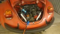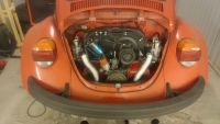 Har også bygd ny arm til gassen. Brukte en Empi arm som utgangspunkt. Men den i seg selv syntes jeg ikke er så bra. Sandblåste den før jeg sveise på en skive så den ble tight å fin før jeg lagde til å sveise på en arm til som gjør den enda stivere. Denne vrir seg aldri.