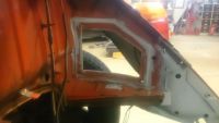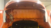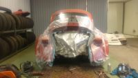 Så blir det å slipe/ matte ned motorrommet utenom rundt rammene da det ble gjort i stad, før grunning og lakkering av motorrommet.  bakskjerm spissene får en runde med steinsprut beskyttelse før lakk.