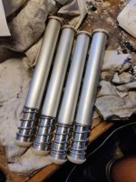 Jeg gikk en tur i garasjen i går og begynte å sette sammen de Logmech støtstangsrør jeg kjøpte i fjor på SCC. Og for en kvalitet han har produsert! Jeg ser at mine støtstenger har tatt i de originale rør jeg har kjørt med, så da var planen å teste disse. De er en del større mot toppen men bruker fortsatt original pakningene, så jeg har trua  Gliser