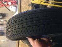 Har også 2 stk "sykkelhjul"  Gliser Nankang dekk i dimensjon 145/65-15. Ikke rullet mange meter disse.