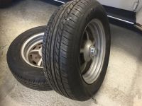 Det er 4stk til sammen, med så og si ubrukte dekk står på (165/50-15 foran, og 205/65-15 bak).