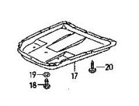 Mangler dekselet under i fronten, fra støtfanger til forstilling. Dekselet dekker håndbrekkmekanisme, styrestag og diverse kabler og rør. Frem til en gang i midten av -69 var det lang type med 6 skruefester: